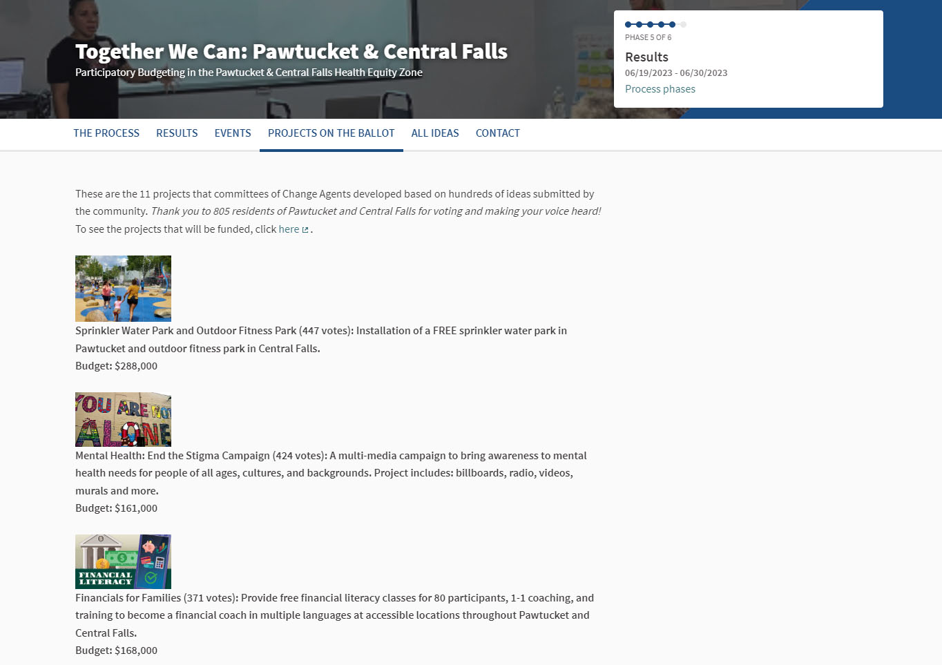 Example pictured above: Pawtucket & Central Falls, Rhode Island used Decidim to collect ideas, votes, and announce events.
